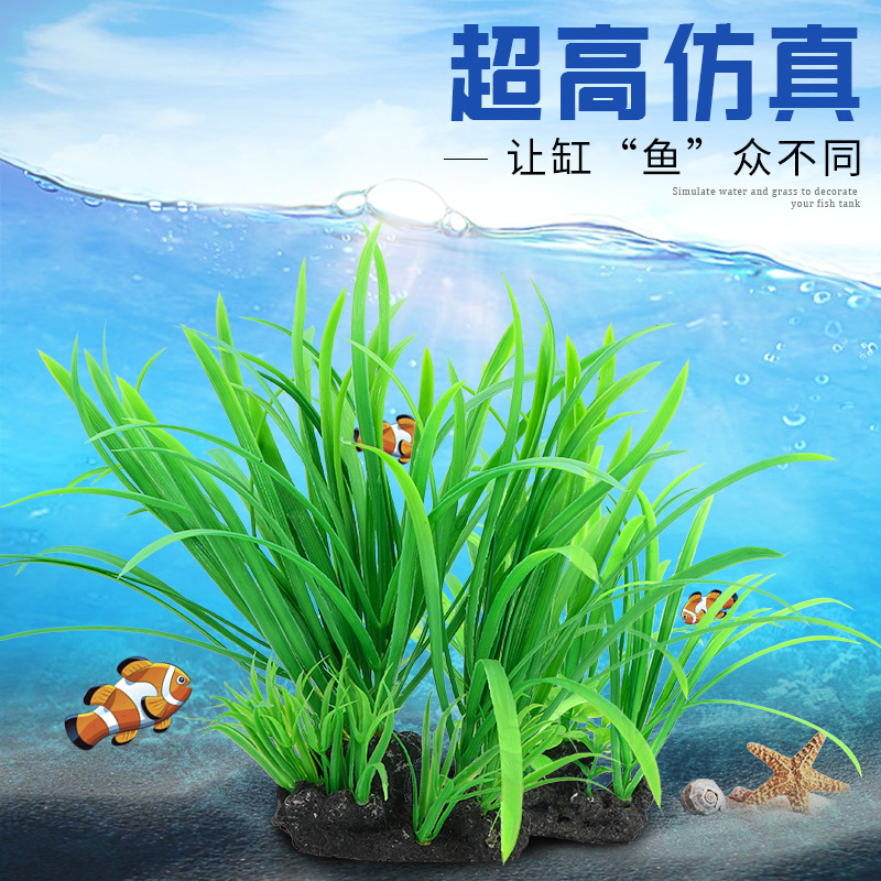 Tanaman akuatik buatan ukuran kecil besar dekorasi lanskap tangki ikan rumput palsu lembut dekorasi akuarium tanaman hijau rumput musim semi grosir