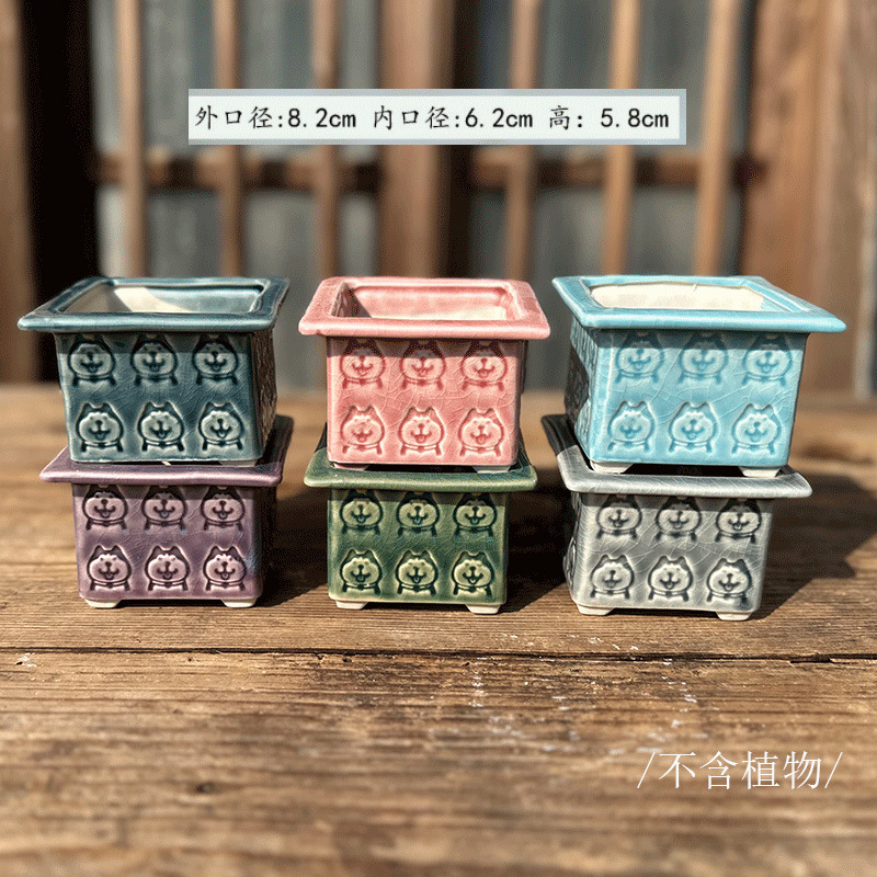 Pot bunga sukulen, segel hewan peliharaan lucu, pot bunga persegi penyimpanan keramik, kepribadian dua ha, pot daging persegi kecil, pabrik grosir