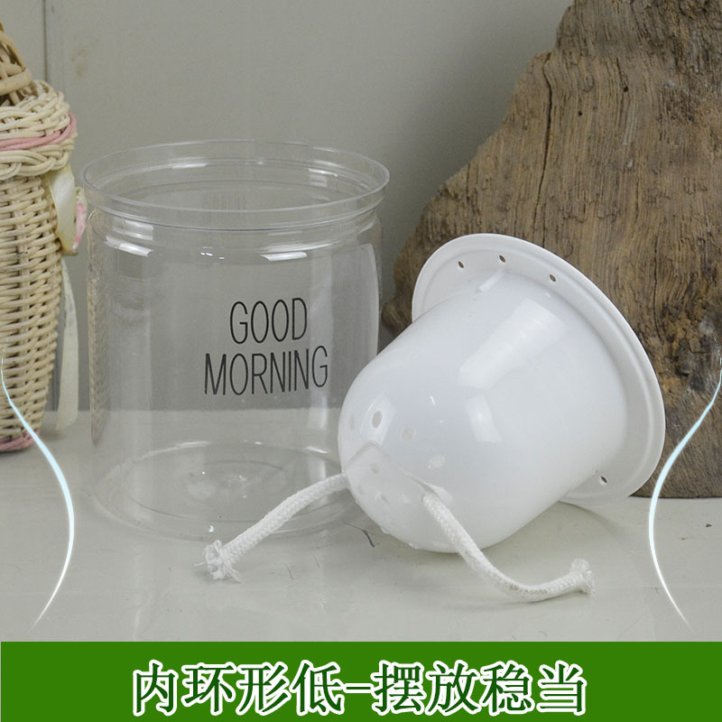 Pot bunga hidroponik plastik transparan PET dengan penyerap sendiri tali katun malas menanam Biru Hijau lobak keberuntungan pohon bambu kaya