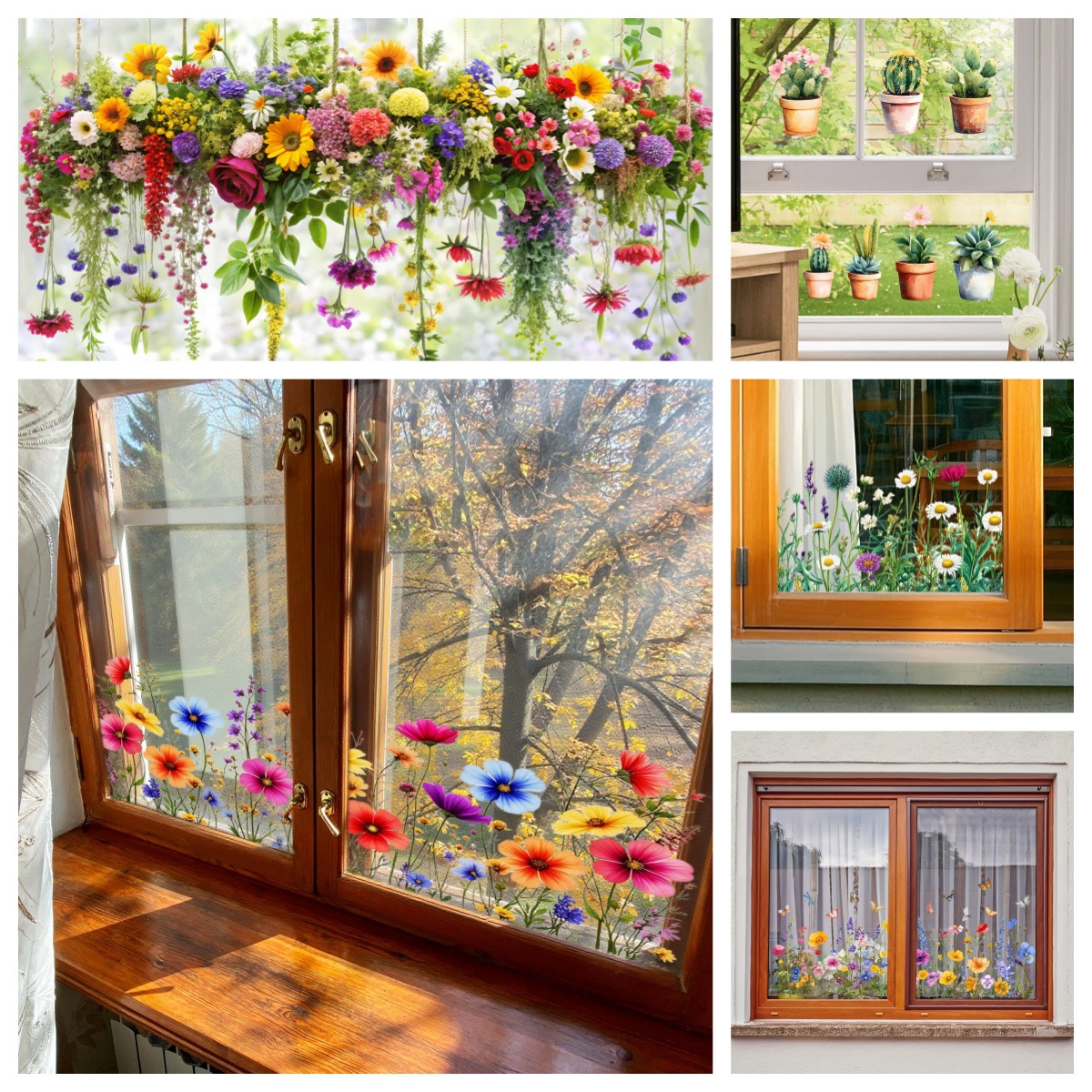 Amazon Green Dekorasi Dalam Ruangan Simulasi Mini Bunga Pot Stiker Jendela PVC Film Transparan Statis
