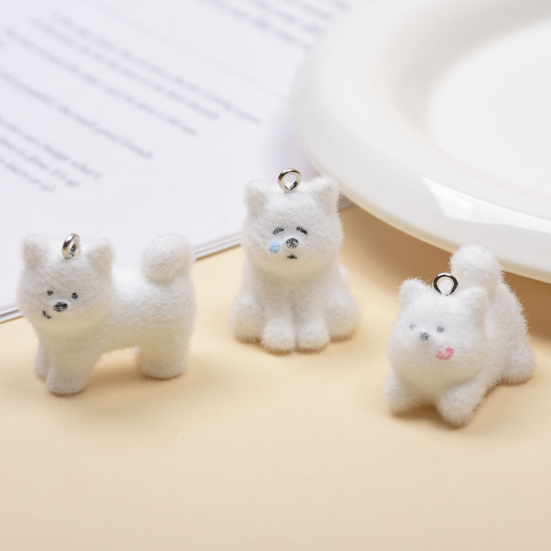 Tas Gantungan Kunci DIY Liontin Mini Imitasi Anjing Putih Kecil Imut Kartun Berbentuk Tumbuhan Tas Rantai Ponsel Ornamen Kecil Berkebun