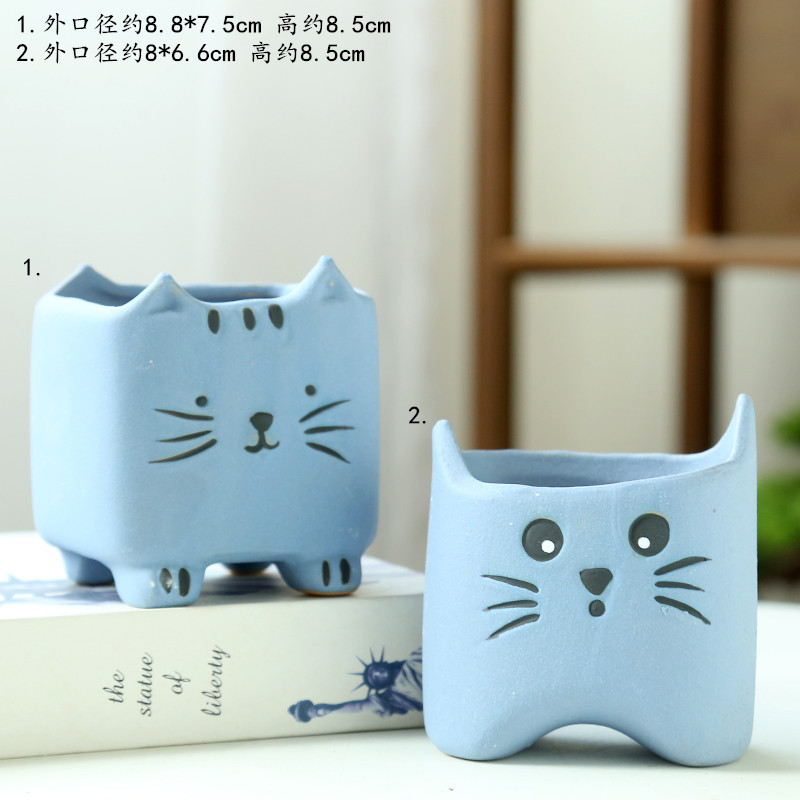 Grosir pot bunga sukulen keramik, pot bunga sukulen, pot bunga kartun kucing kreatif, pot bunga 7511