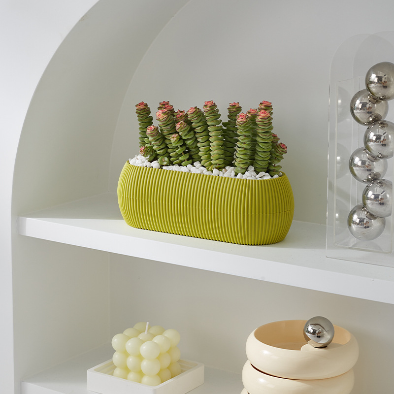 Pot bunga oval sederhana, pot bunga penyerap otomatis malas tebal, sederhana, balkon, desktop, penyimpanan air