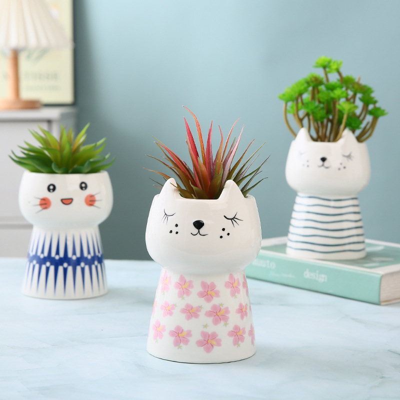 Pot Bunga Keramik Kucing Kartun Lucu Sederhana Nordic Lemari TV Rumah Tangga Dekorasi Rumah Dekorasi Rumah Kreatif