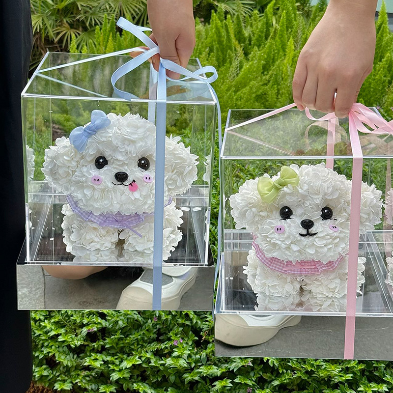 Mini Bichon hewan peliharaan lucu anjing abadi bunga 520 hadiah Hari Valentine untuk pacar ulang tahun pacar