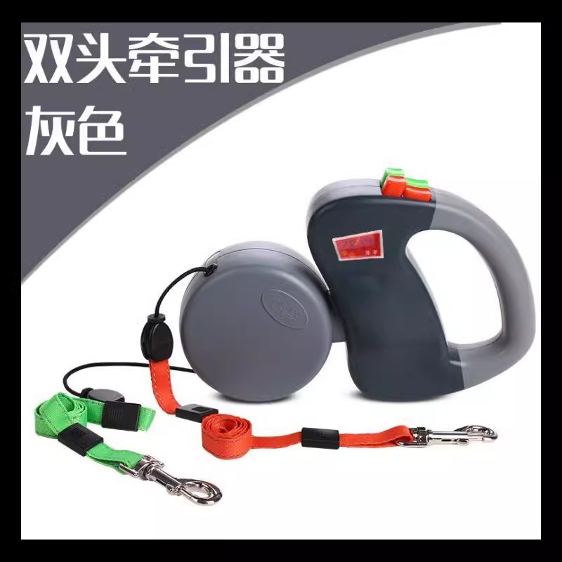Tali traksi otomatis hewan peliharaan, satu tarikan dua kepala ganda tali anjing berjalan sedang dan besar rantai anjing dua sabuk traksi anjing