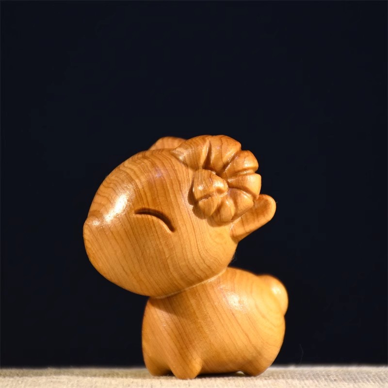Gabus kayu berukir domba kecil yang lucu dengan pegangan tangan domba zodiak