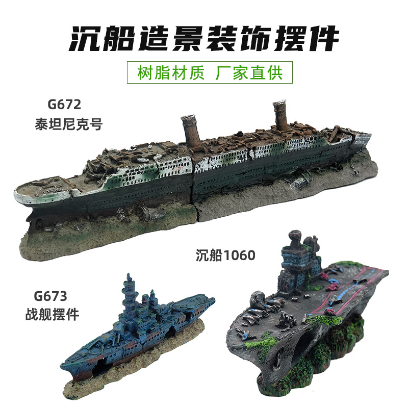Akuarium shipwreck kreatif tangki ikan lansekap resin kerajinan pesawat pembawa kapal militer kapal bajak laut rusak ornamen kapal rusak