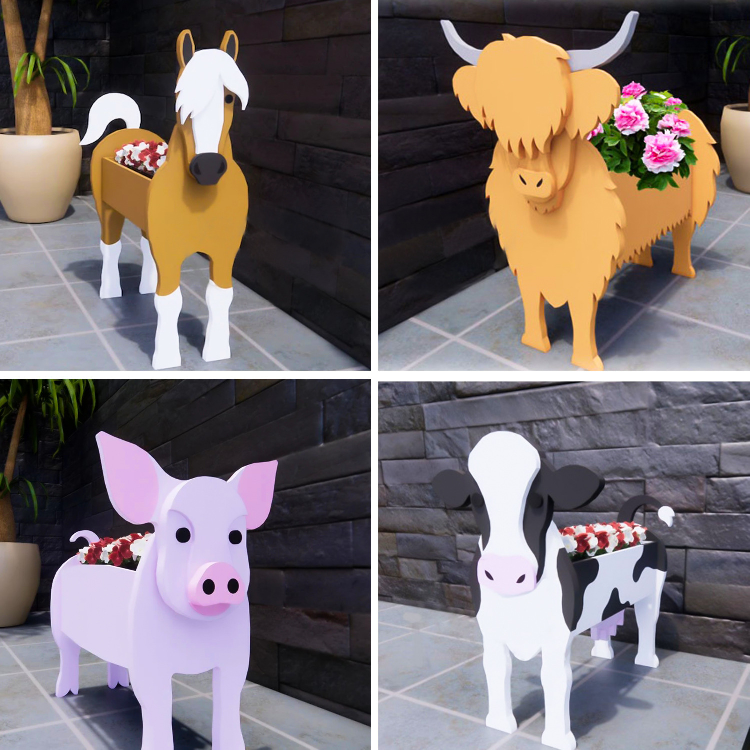 Dekorasi taman, pvc kambing sapi pot bunga halaman taman balkon dekorasi taman pot anjing