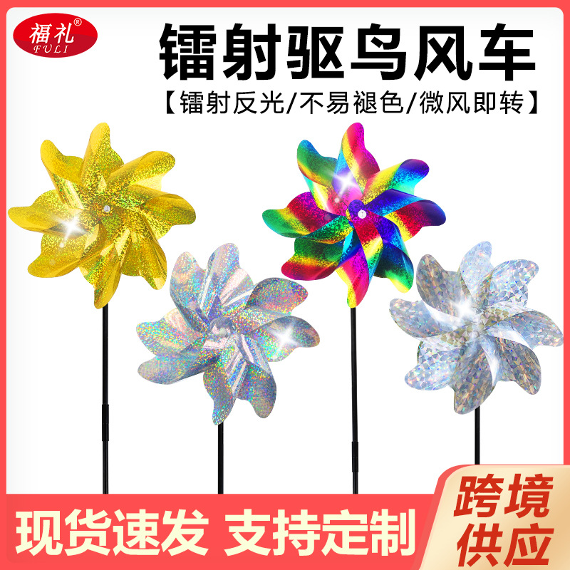 Pasokan lintas batas laser warna-warni burung kincir angin mengemudi berkebun 8-piece kincir angin besar dua sisi tebal kincir angin mengemudi burung reflektif