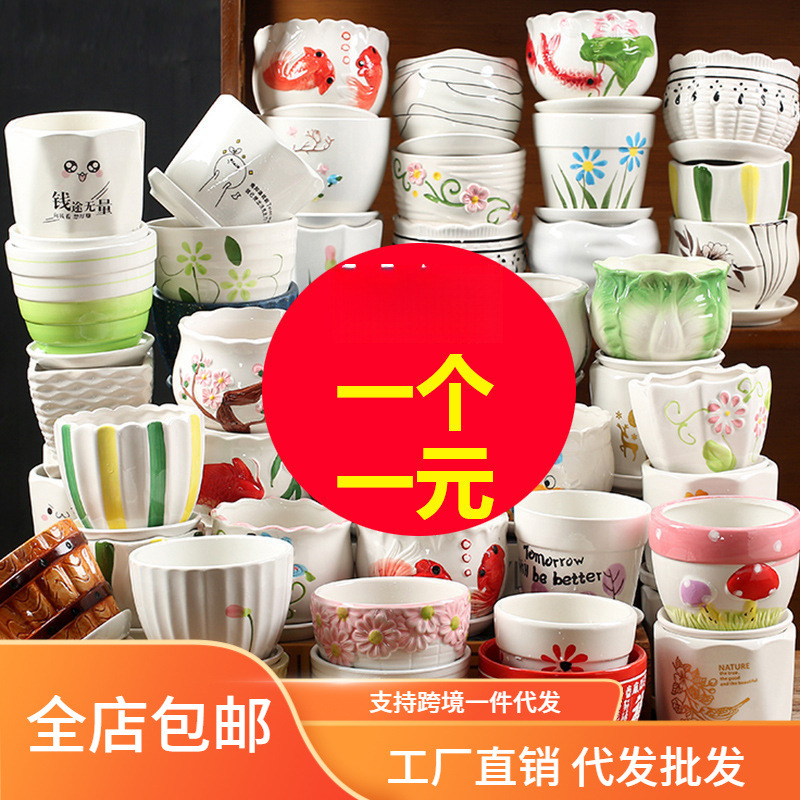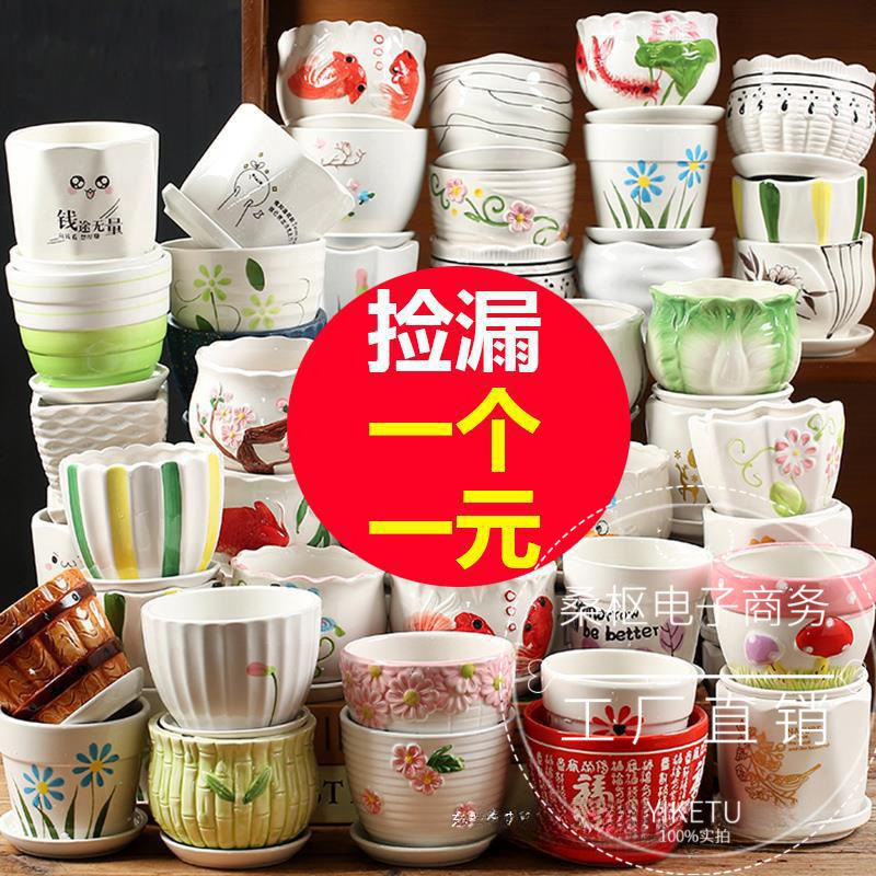 Pot bunga multi-daging Pot bunga keramik dengan nampan harga khusus pot pohon keberuntungan kaliber besar pot bunga multi-daging rumah tangga kreatif