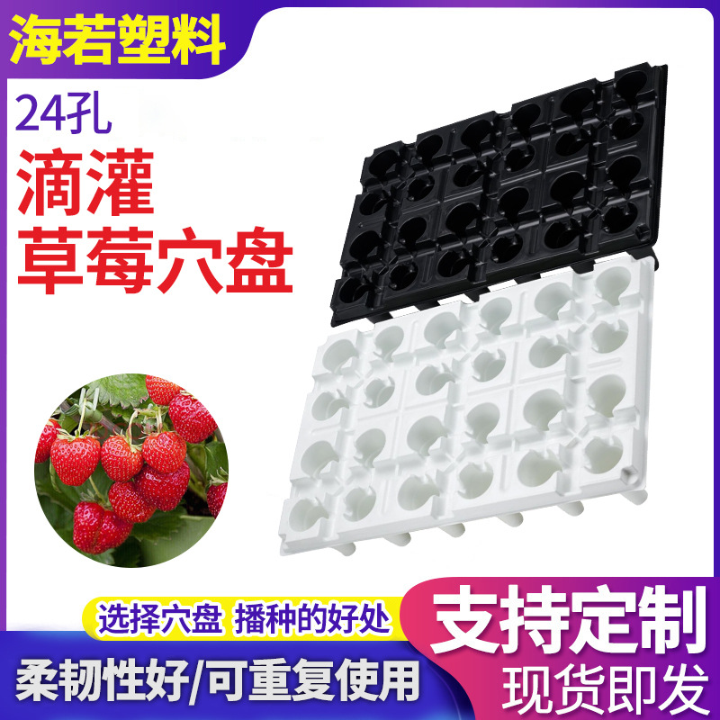 Nampan bibit stroberi irigasi tetes 24 lubang, nampan penanam buah sayuran khusus stroberi dipertebal dan ditebus grosir