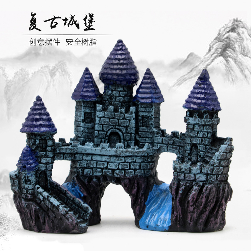 Dekorasi tangki ikan gaya Eropa castle antik real kecil Castle akuarium pemandangan desain rumah rumah tinggal rumah