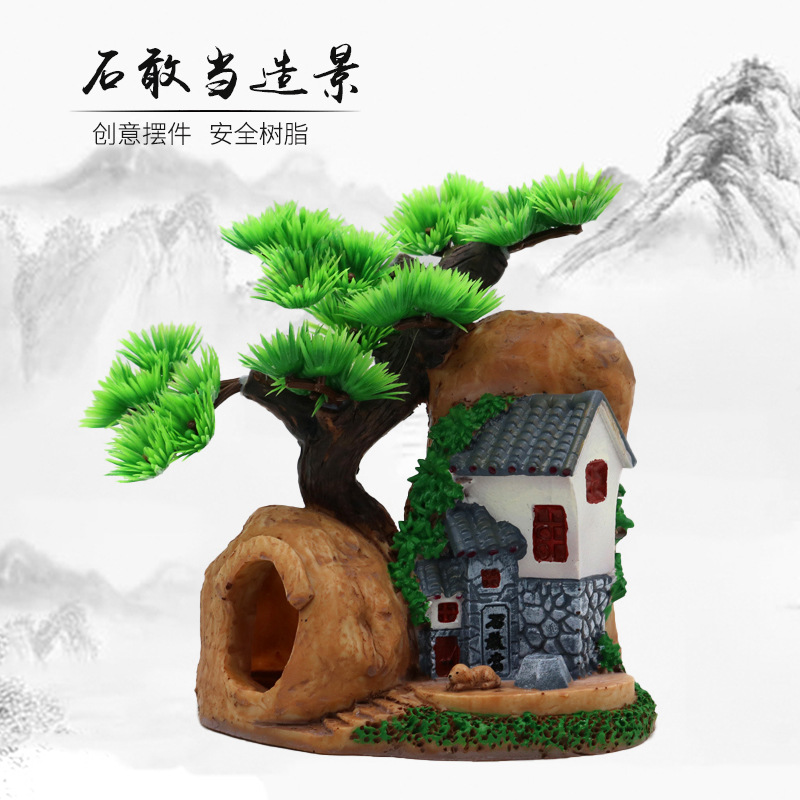 Akuarium gunung, ukuran kecil rockery mini Jianfeng lanskap batu karang resin dekorasi lanskap akuarium kecil