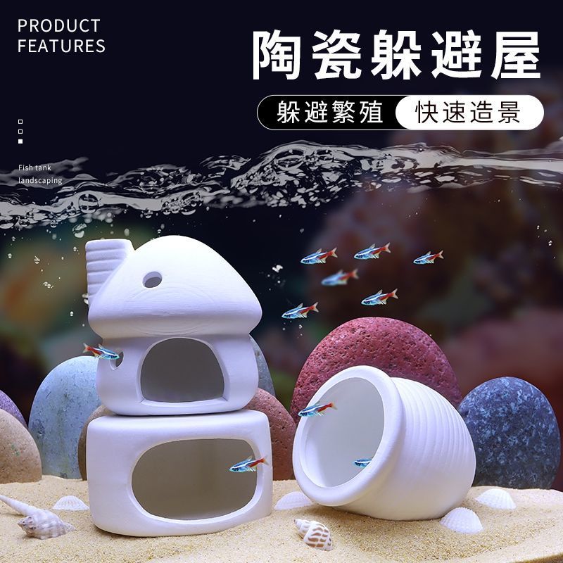 Tangki Ikan Rumah Jamur Dekorasi Ornamen Tembikar Set Lengkap Lansekap Ikan Hias Lubang Pemijahan Udang Sarang Keramik Rumah Penghindaran Grosir