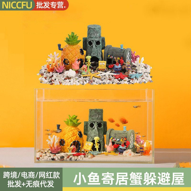 NC tangki ikan pemandangan bawah air dekorasi udang ikan kecil hermit kepiting shelter rumah melihat Hitam cangkang udang sarang sarang snapper