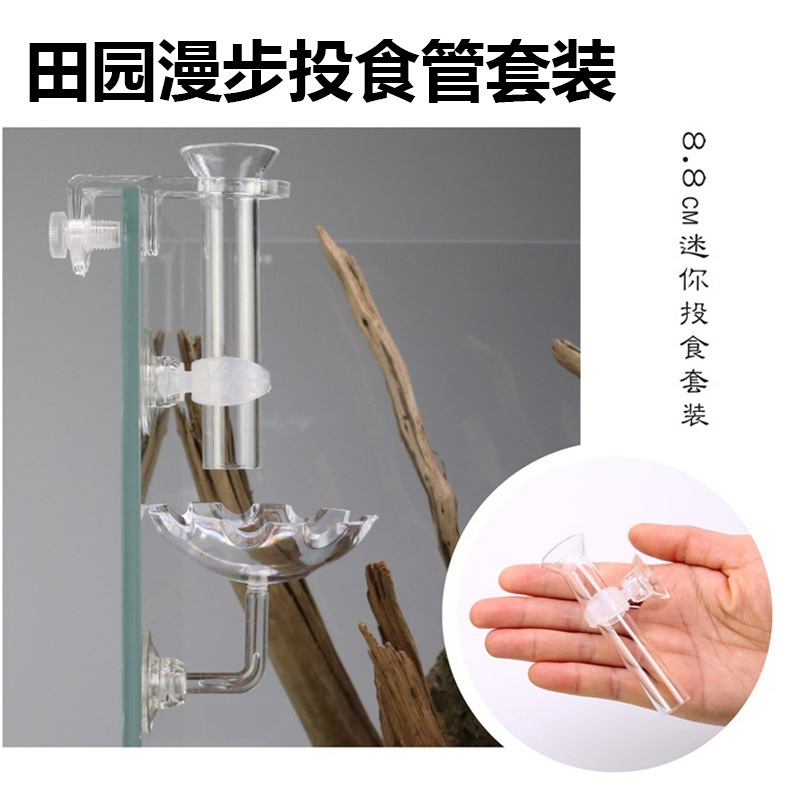 Akuarium tangki ikan udang silinder tabung pemberi makan perangkat kristal udang hias ikan pengumpan kaca