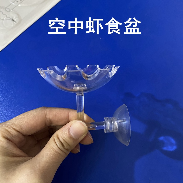 Pengumpan udang kristal transparan, pot pemberi makan udara terpasang di dinding dengan nampan pemberi makan udang hias ikan