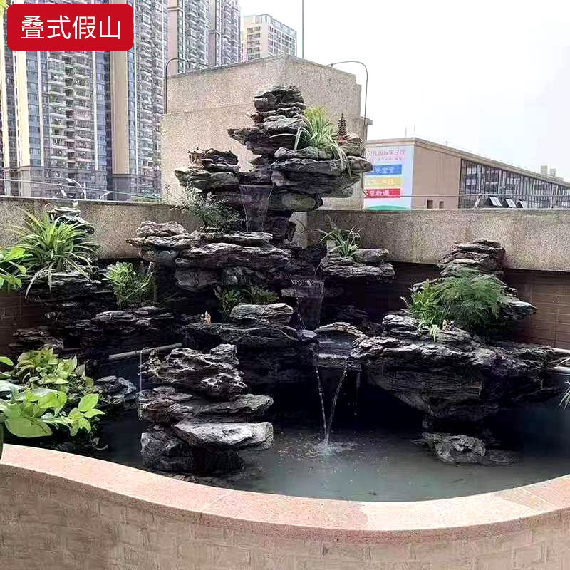 Batu alam danau halaman vila kolam ikan pemandangan air batu rekayasa kota dekorasi rumput batu lanskap