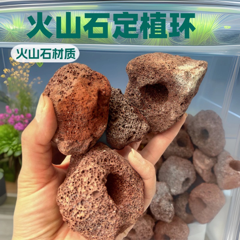 Batu Vulkanik Merah Cincin Penanaman Tetap Air Rumput Dasar Batu Vulkanik Kosong Dapat Disesuaikan Batu Vulkanik Lubang Tunggal Lubang Ganda