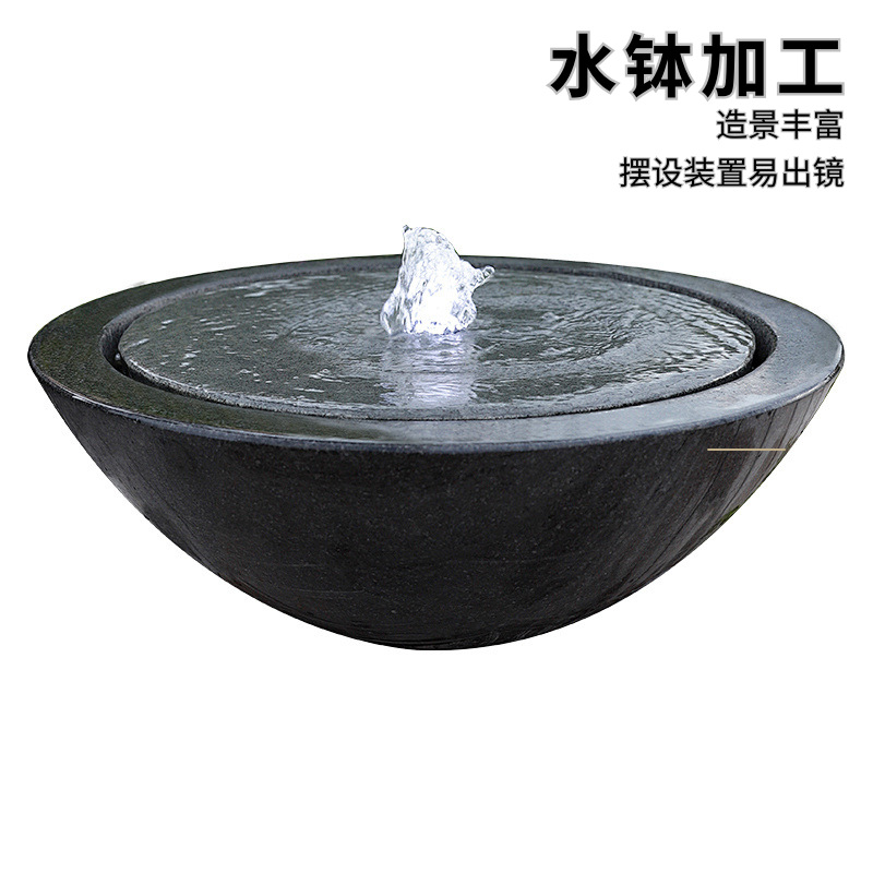 Mangkuk air batu gunung hitam bentuk khusus pemrosesan Strip batu cermin gantry batu hitam batu baskom batu bangku halaman lanskap nyata