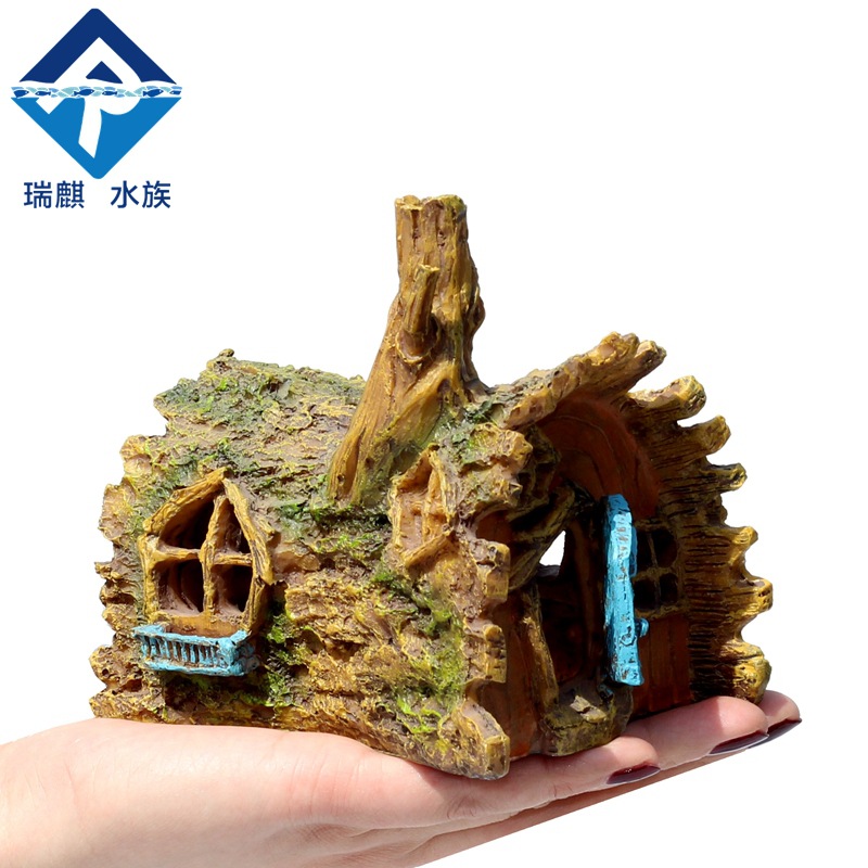 Ruiqi pemandangan akuarium kayu kreatif dekorasi rumah pohon baru ikan kecil berjalan melalui rumah Dekorasi batu karang resin