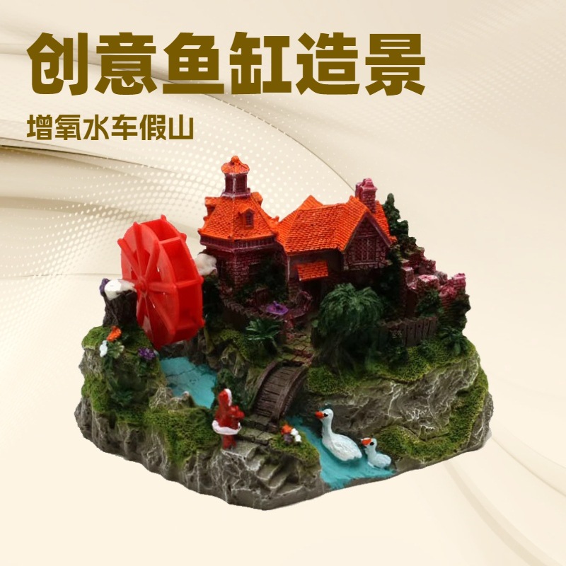 Tangki Ikan Hiasi Batu Batuan Akuarium Lansekap Rumput Air Simulasi Batu Batuan Villa Kincir Angin Kincir Air