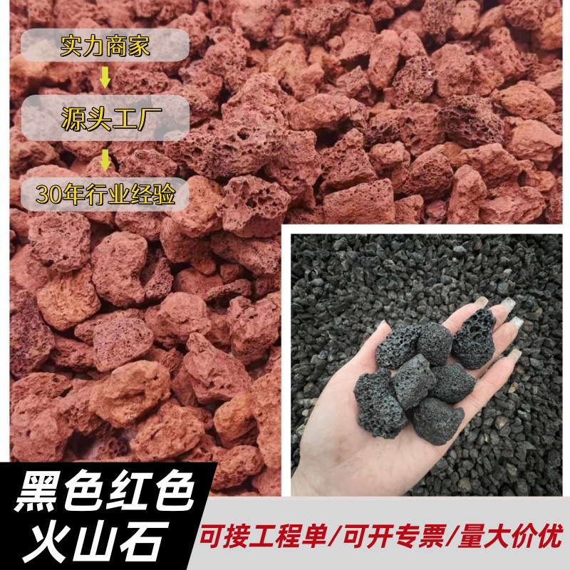 Produsen menyediakan batu vulkanik merah untuk lansekap taman, alas tanaman, filtrasi akuarium, dan batu pemurni air.