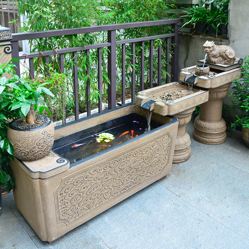 Taman taman taman luar ruangan teras batu air mancur ikan kolam ikan tangki ikan balkon dekorasi lanskap