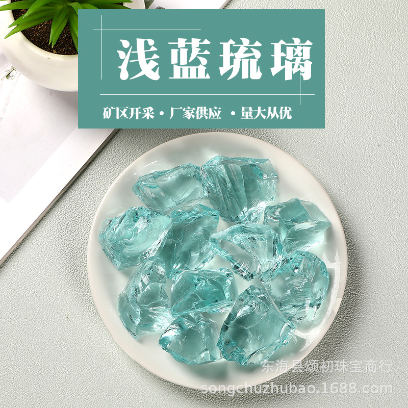 Tersedia kristal glasir berwarna biru muda batu asli batu aromaterapi batu wangi tangki ikan berkebun lanskap batu demagnetisasi kerikil