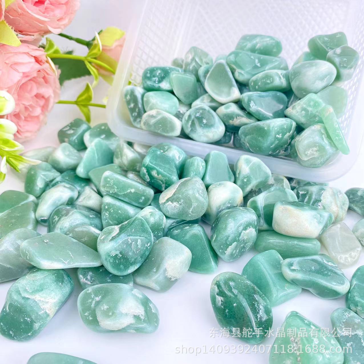 Kristal Stroberi hijau alami kristal kerikil batu degaussing tangki ikan bonsai dekorasi lanskap batu yoga batu aromaterapi satu pak