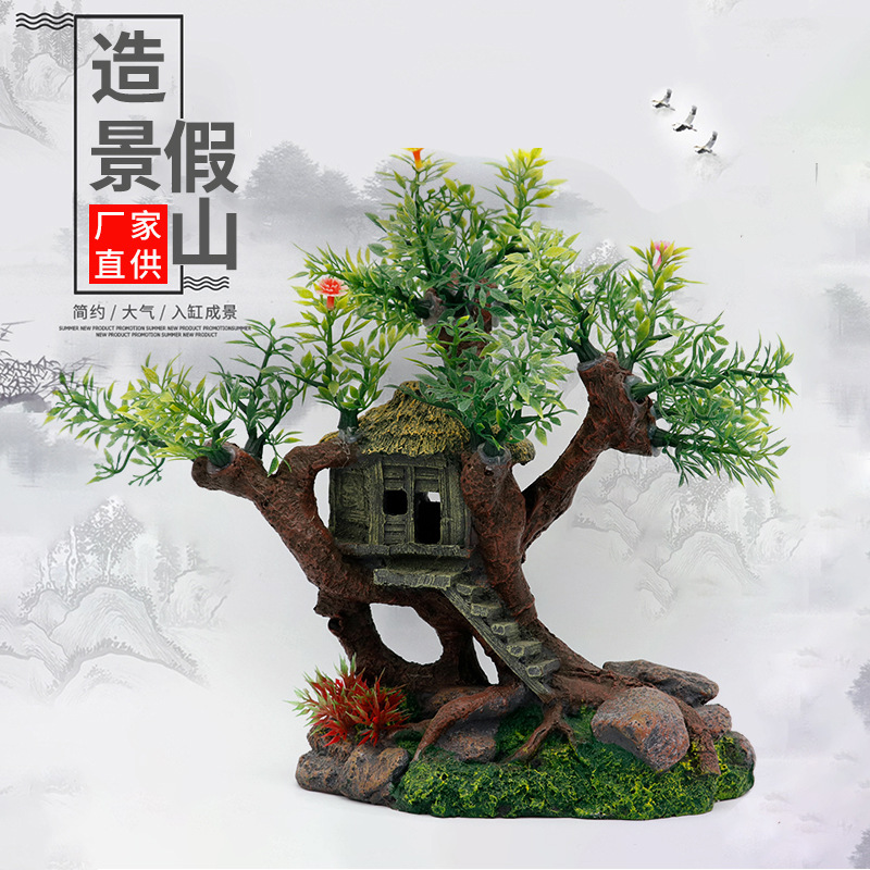 Dekorasi akuarium Dekor rumah simulasi lanskap tangki ikan besar perlengkapan dekorasi akuarium batu karang rumah paviliun lanskap
