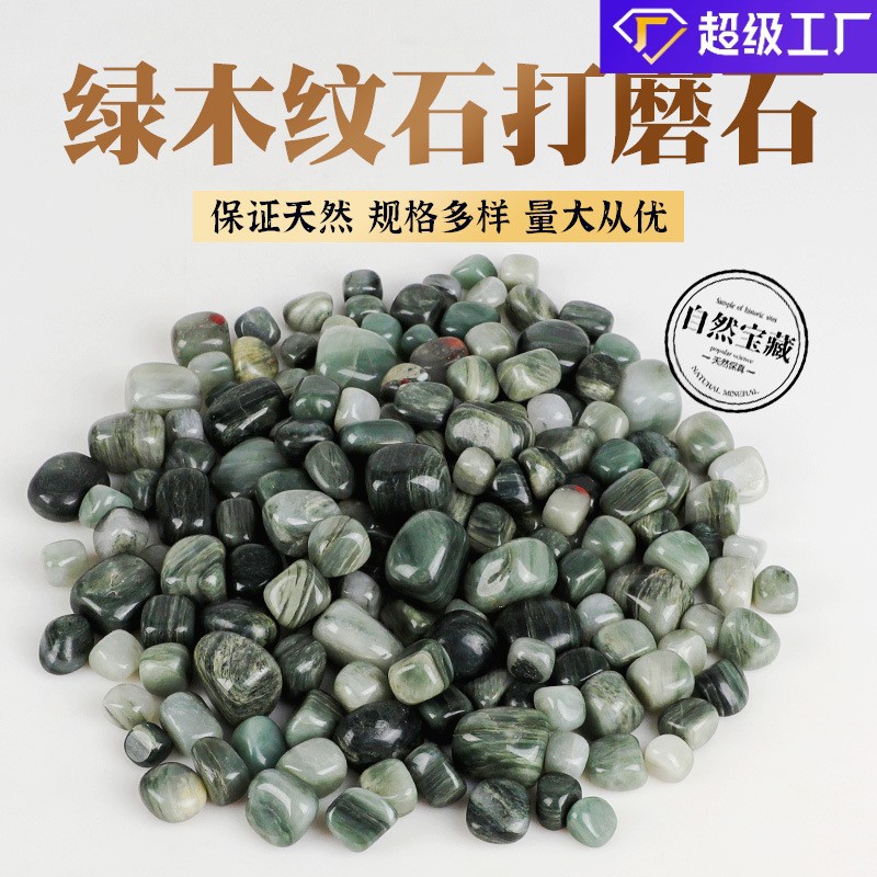 Kustom Batu Bertekstur Kayu Hijau Alam Batu Giling Dipoles Batu Rolling Batu Penyembuhan Batu Kristal Asli Batu Akik Batu Demas Batu Hancur