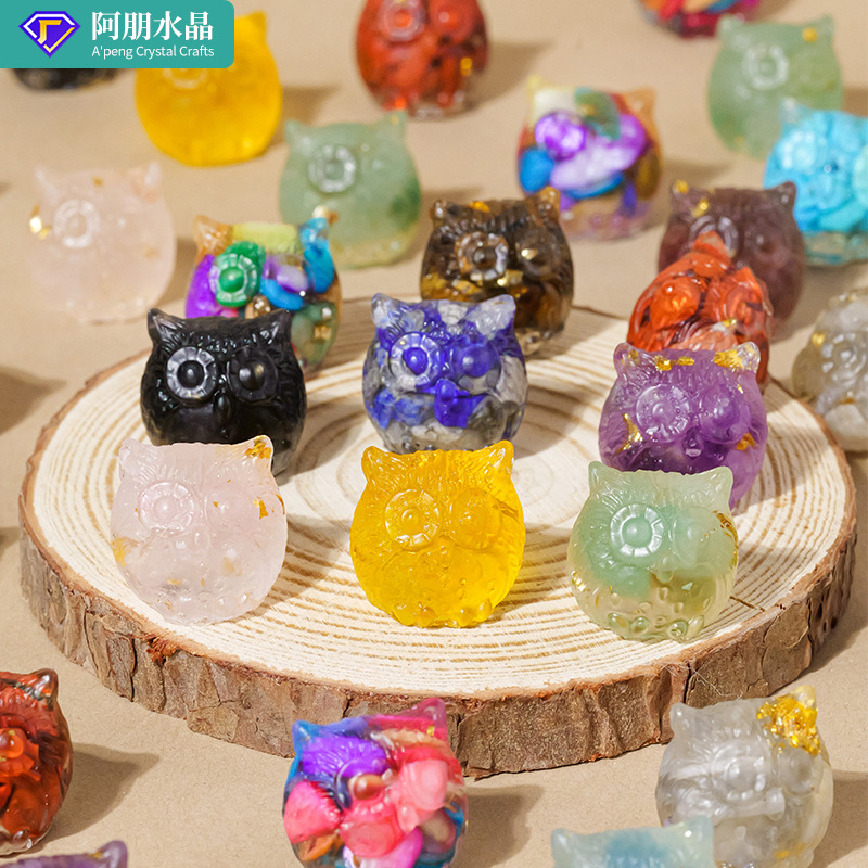 Ornamen Burung Hantu Batu Kristal Alami Lintas Batas Hiasan DIY Resin Kristal Hewan Lansekap Meja