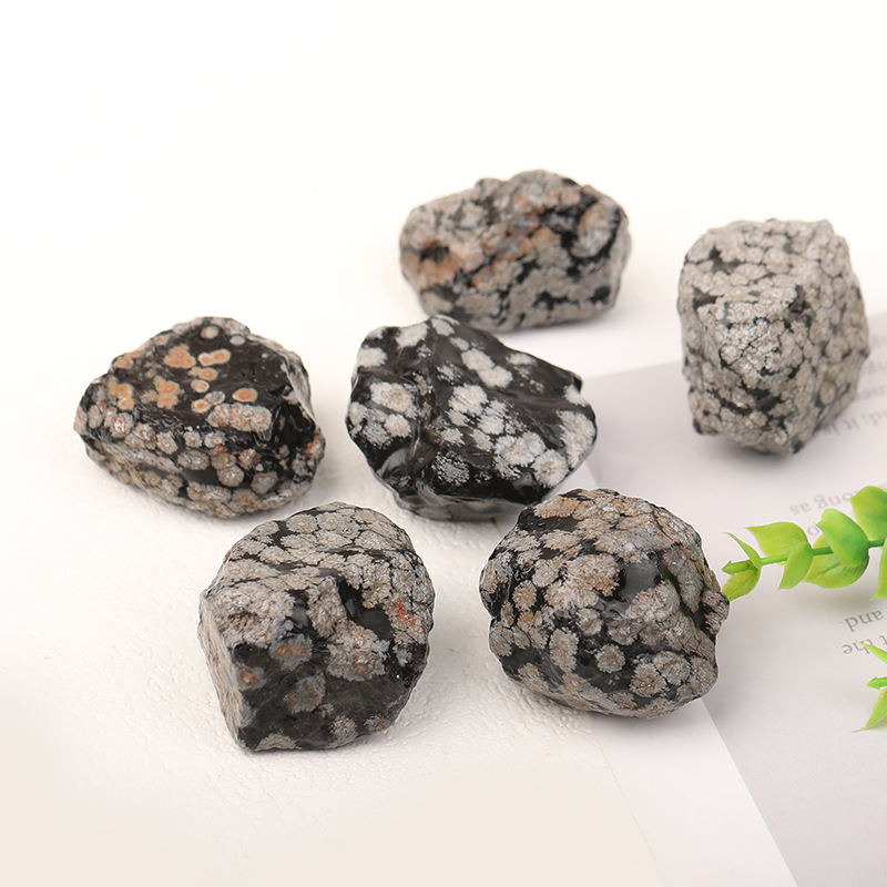 Natural Snowflake Obsidian Obsidian Oral Orbidi Tangki Ikan Pot Bunga Dekorasi Pemandangan Batu Kristal Spesimen Bijih Anak-anak Bermain