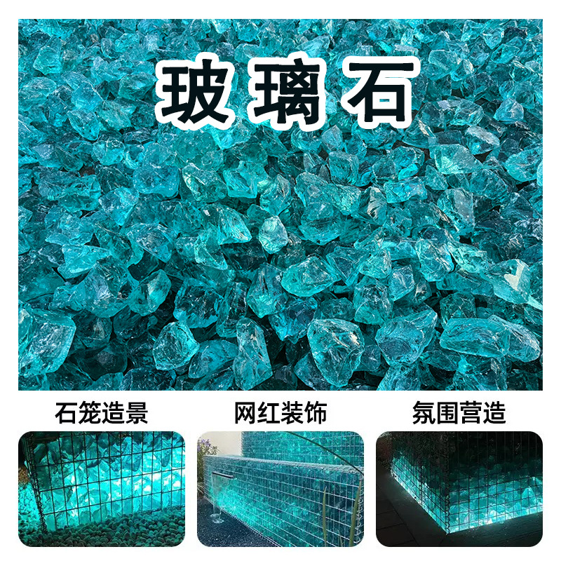 Pasokan pabrik langit biru glasir berwarna ornamen pemolesan kaca biru partikel tangki ikan lanskap pot bunga dekorasi batu kristal