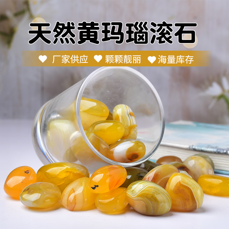 Batu akik kuning alami bergulir batu aromaterapi pot bunga batu tangki ikan lanskap kristal Buddha pemujaan kerikil partikel besar tersedia grosir