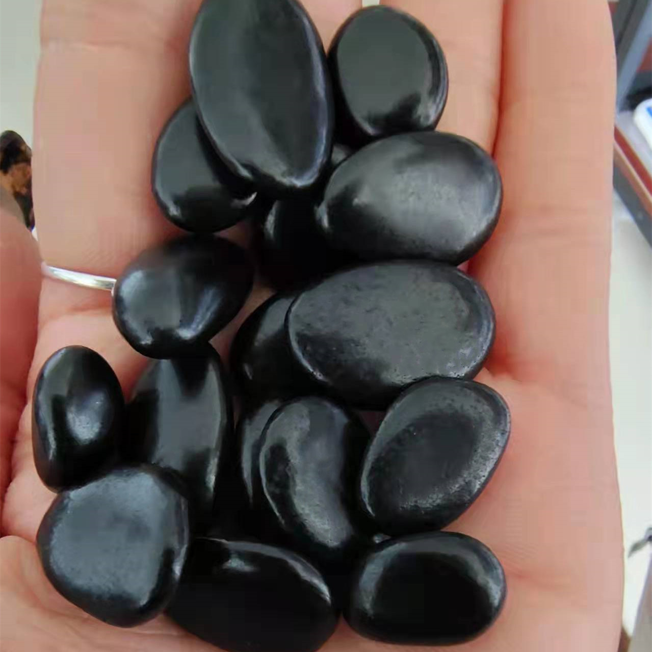 Hitam halus dipoles batu hujan taman lanskap batu bulat teknik paving permukaan batu hitam 2-3cm