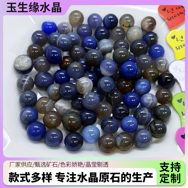 Pasokan pabrik bola batu akik biru ornamen pemolesan manik-manik batu akik biru partikel tangki ikan lanskap pot bunga dekorasi batu kristal