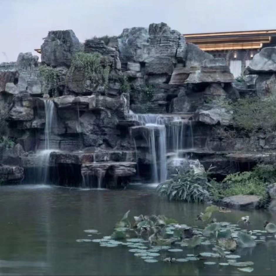 Air mancur batu besar pemandangan luar ruangan kolam renang batu karang kolam ikan lanskap luar ruangan patung batu karang
