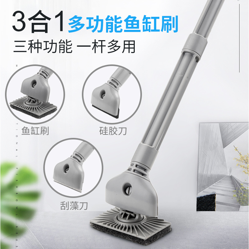 Yili sikat pembersih tangki ikan, sikat pembersih tangki ikan gagang panjang 3-in-1 sikat pembersih tangki ikan