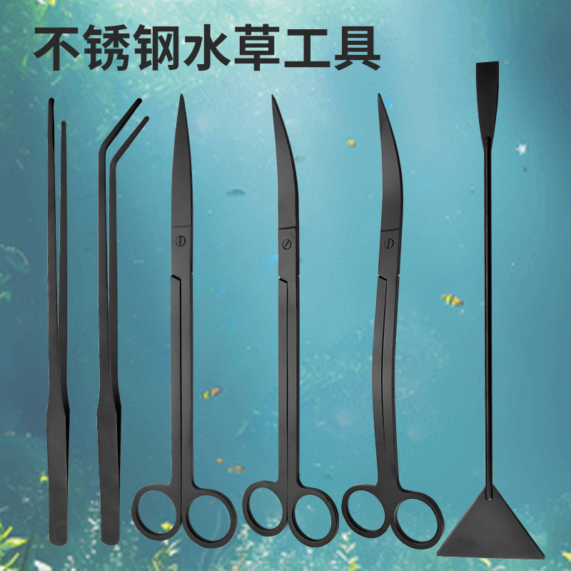Gunting tanaman air, set ornamen pembersih akuarium, set lengkap lansekap akuarium, paket lansekap pemandangan dekoratif, pinset
