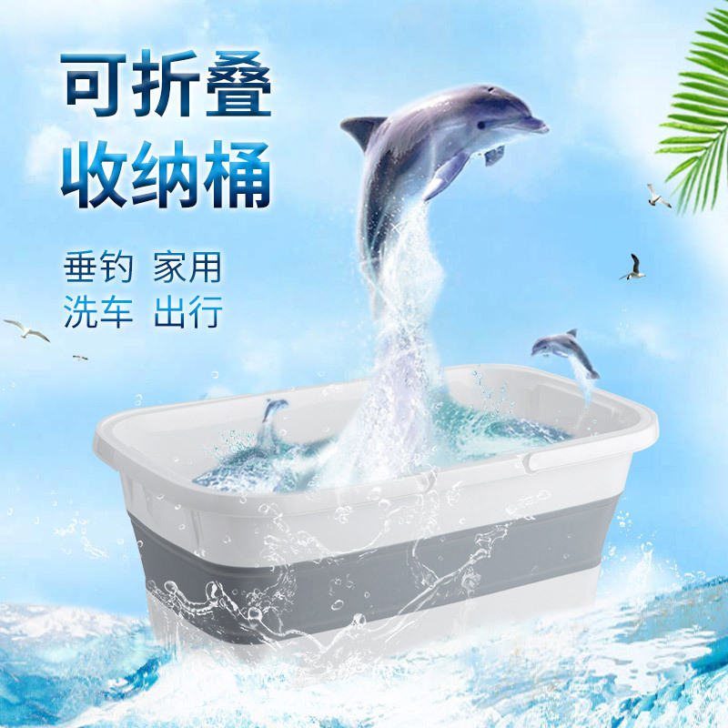 Ember pembersih rumah tangga portabel multifungsi, ember mandi kaki lipat, ember pancing perjalanan luar ruangan dapat ditarik