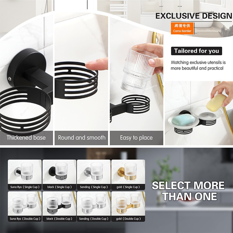 Rak Sikat Gigi Cangkir Gigi Tipe Gantung Dinding Tanpa Lubang Cangkir Obat Kumur Toilet Peras Pasta Gigi Cangkir Gagang Tangan Warna-Warni Pabrik Lintas Batas