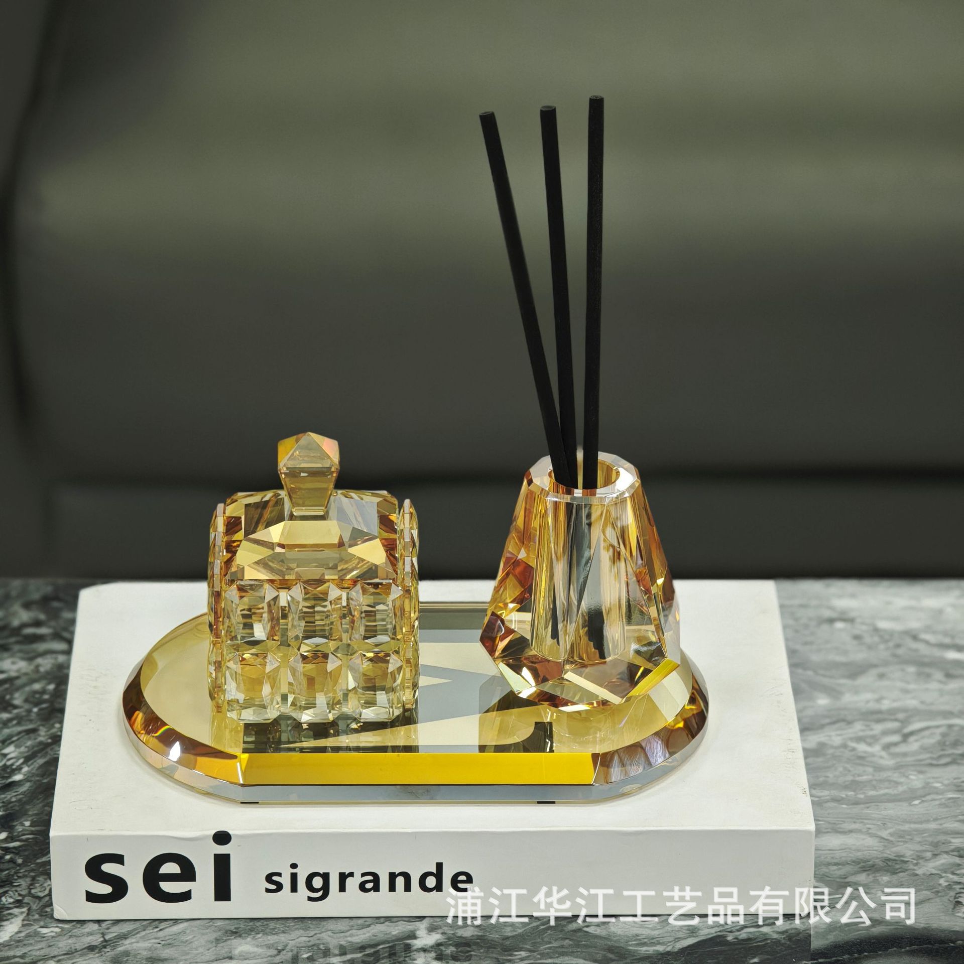 Set Cuci Kaca Kristal Cangkir Cuci Gigi Gelas Cuci Tangan Cangkir Cuci Gigi Gaya Mewah Ringan Kotak Sabun Botol Aromaterapi Kotak Perhiasan Nampan