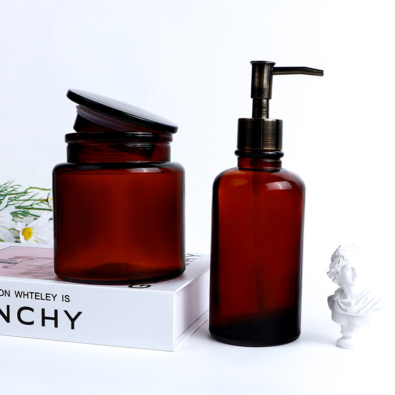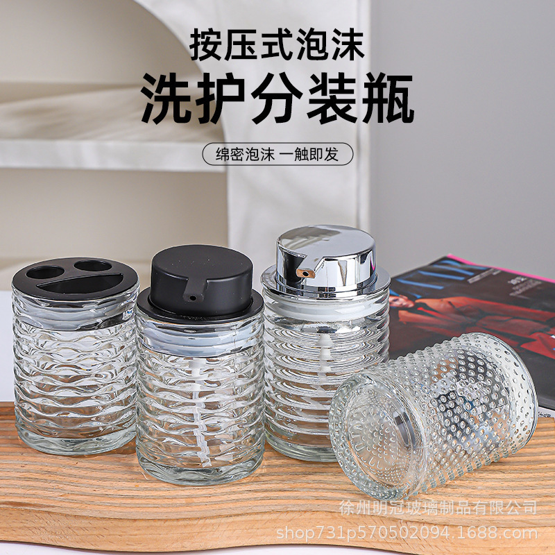 Set Cangkir Sikat Gigi Kustom Botol Pembersih Tangan Bentuk Bulat Botol Sabun Kaca Kaca Kemasan Kemasan Sikat Botol Mandi Mandi