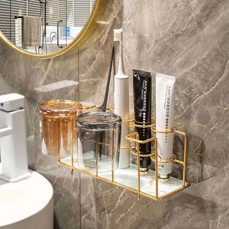 Tempat Penyimpanan Kamar Mandi Rak Sikat Gigi Meja Perlengkapan Rumah Tangga Set Gelas Cuci Kaca Rak Sikat Gigi Tanpa Lubang