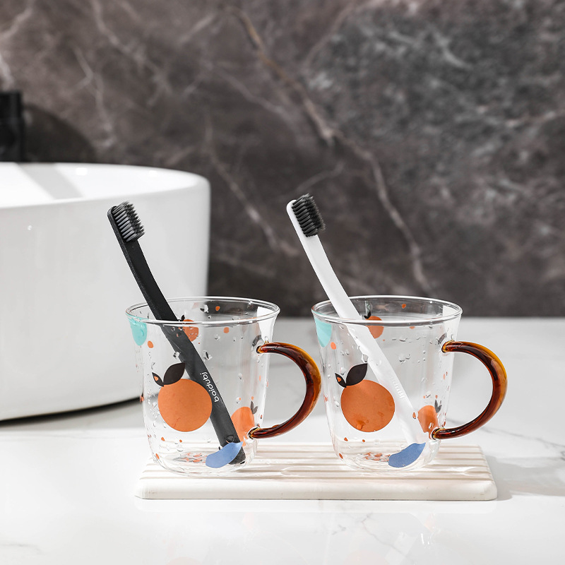Cangkir pencuci mulut kaca, cangkir sikat gigi pasangan, setelan keluarga gaya ins, mewah, ringan, rumah tangga