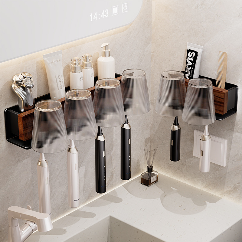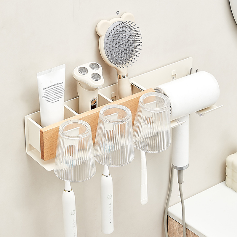 Rak Sikat Gigi Pengering Rambut Kayu Asli Rak Penyimpanan Sikat Gigi