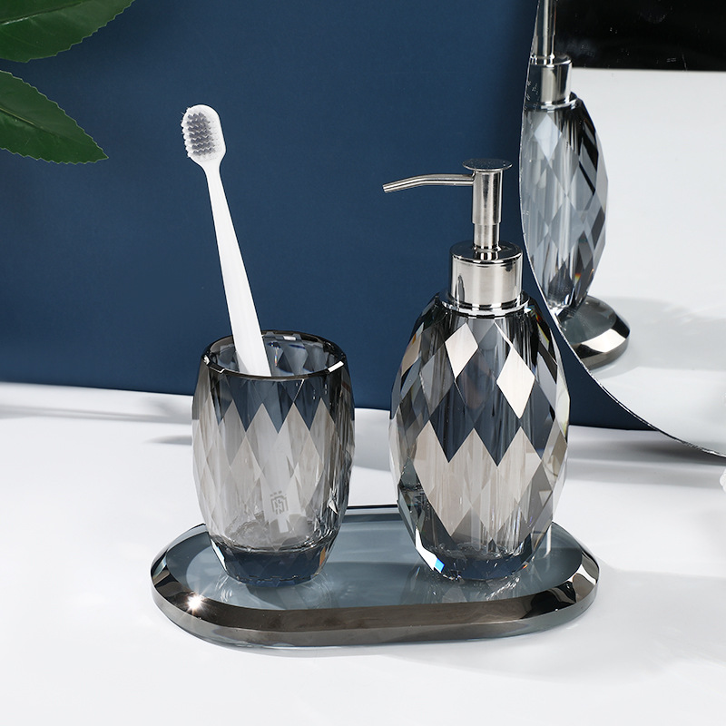 Botol pembersih tangan kristal, setelan cangkir sikat gigi hotel, perlengkapan rumah tangga kamar mandi Nordik, botol cuci tangan kristal mewah ringan sederhana